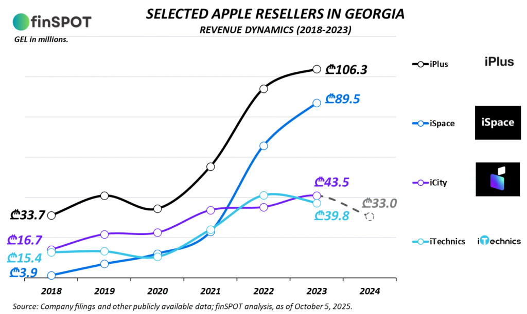 ბოლო წლებში ეფლის პროდუქციის რესელერებს შემოსავლების შთამბეჭდავი ზრდის ტემპი ჰქონდათ. თუ 2018 წელს მათი ჯამური ბრუნვა ₾70 მილიონს შეადგენდა, ხუთი წლის შემდეგ ეს მაჩვენებელი გაოთხმაგდა და ₾280 მილიონს მიაღწია. ზრდის ამ ტალღაში წამყვანი როლი ეკავათ iSpace-სა და iPlus-ს, რომლებმაც ერთად საერთო ზრდის დაახლოებით 76% განაპირობეს.