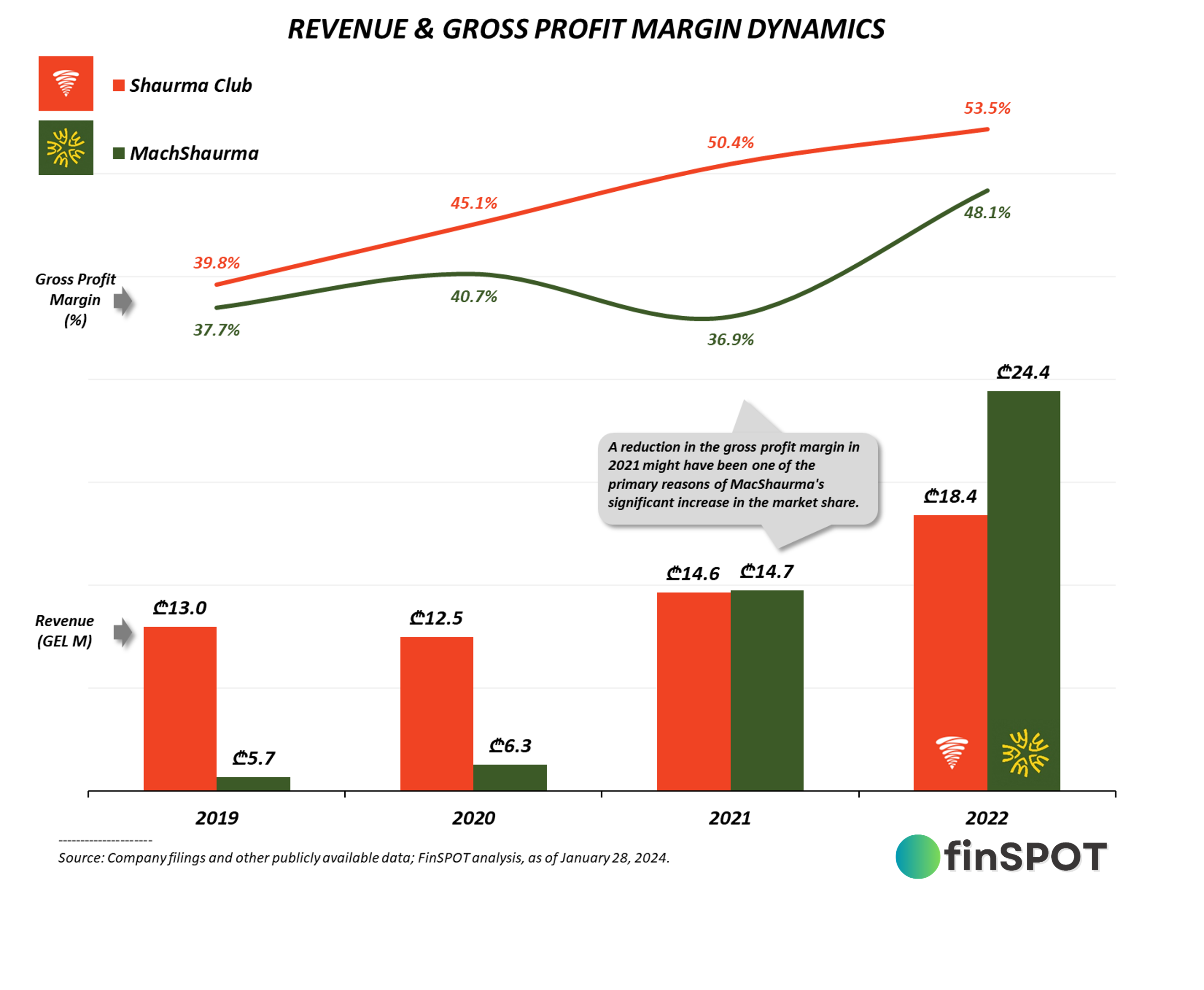 2022 წელს მაკშაურმამ დაასტაბილურა საერთო მარჟა და 48%-მდე აწია, თუმცა შაურმა ქლაბის მარჟას მაინც 5%-ით ჩამოუვარდება;